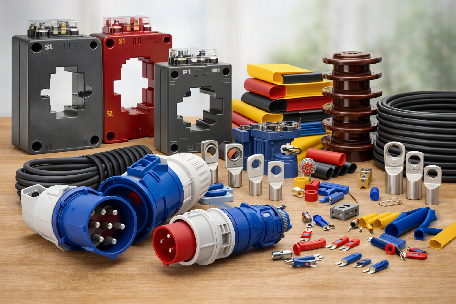 Aisladores, transformadores de corriente, termoencogible, Breakers, tableros eléctricos,